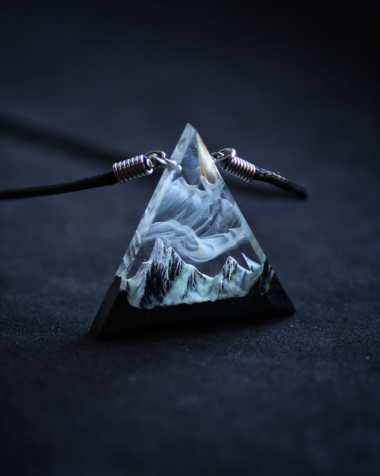 Epoxy resin and wood Mountain Pass: Triangle pendant - Glow in the dark