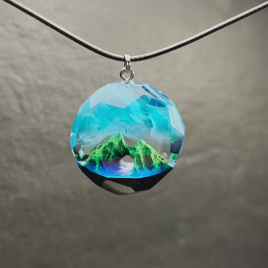 Epoxy resin and wood Mountain Heart Nightfall pendant