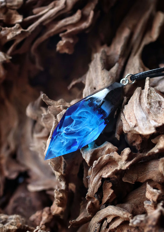 Handmade epoxy resin and wood Couple heart Nightfall Mountain pendant Faceted
