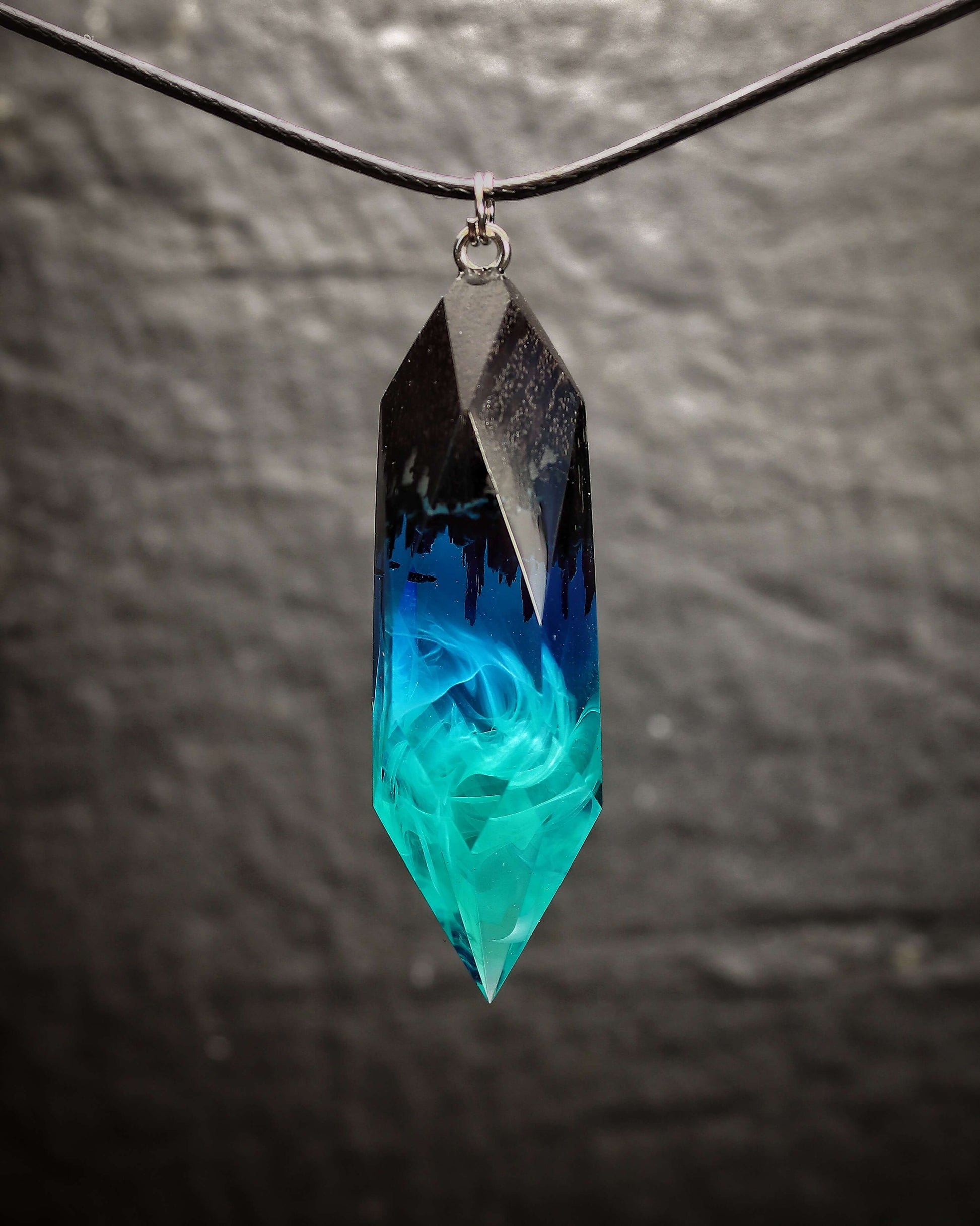 Handmade crystal-shaped pendant from black hornbeam wood and resin. Can be personalized.