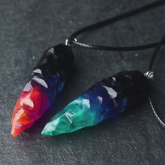 Epoxy resin and wood Couple Nightfall & Northern lights rough pendant