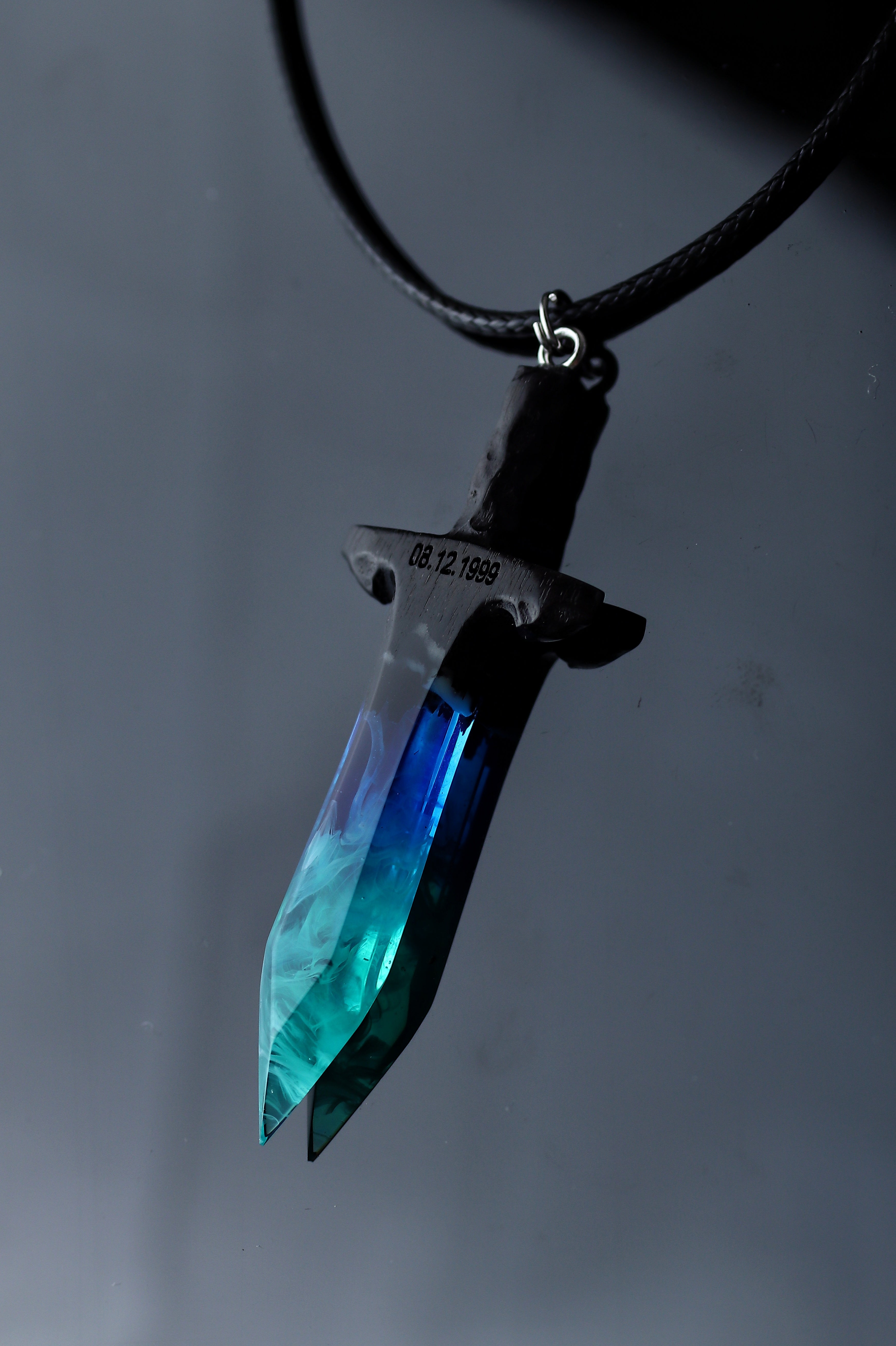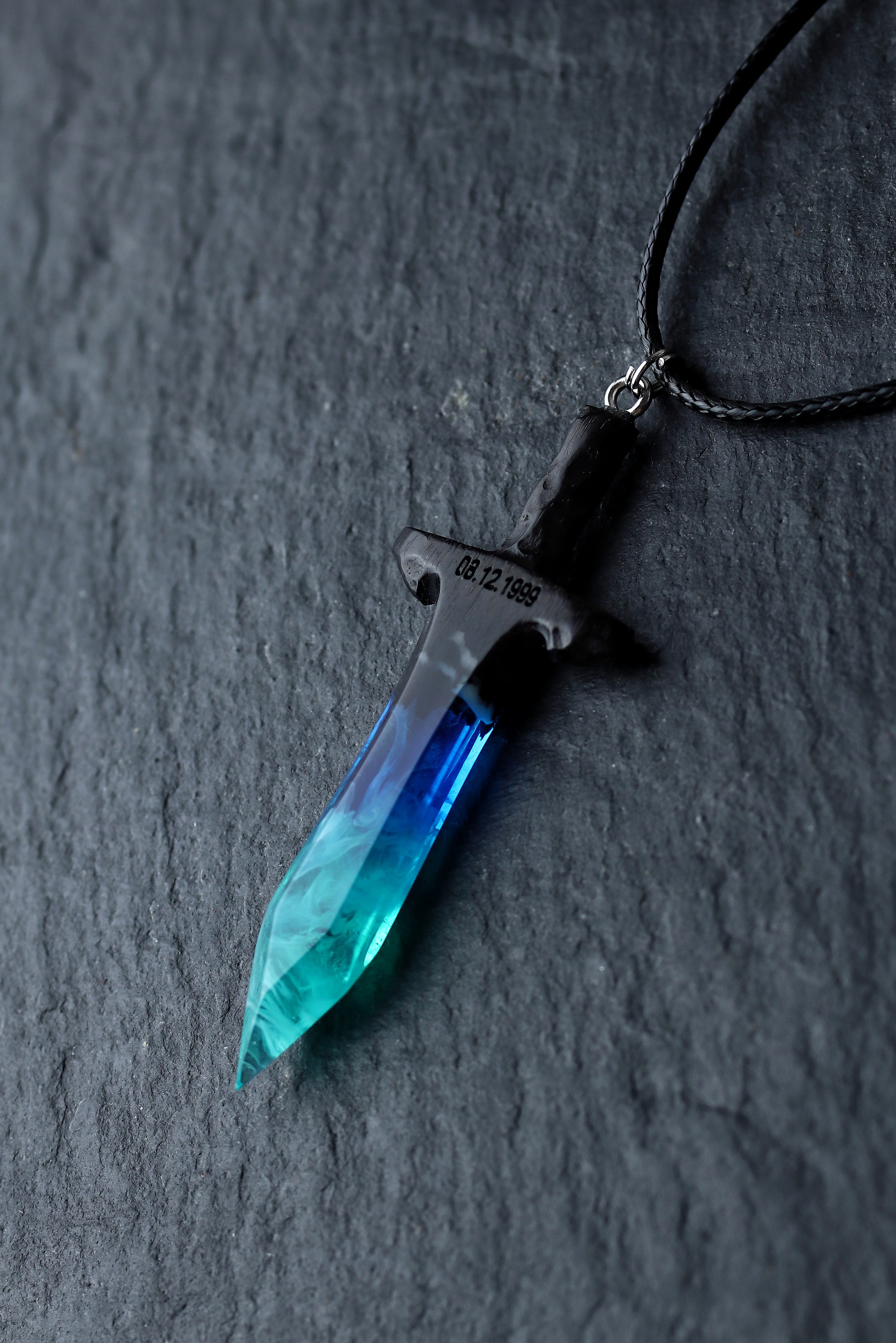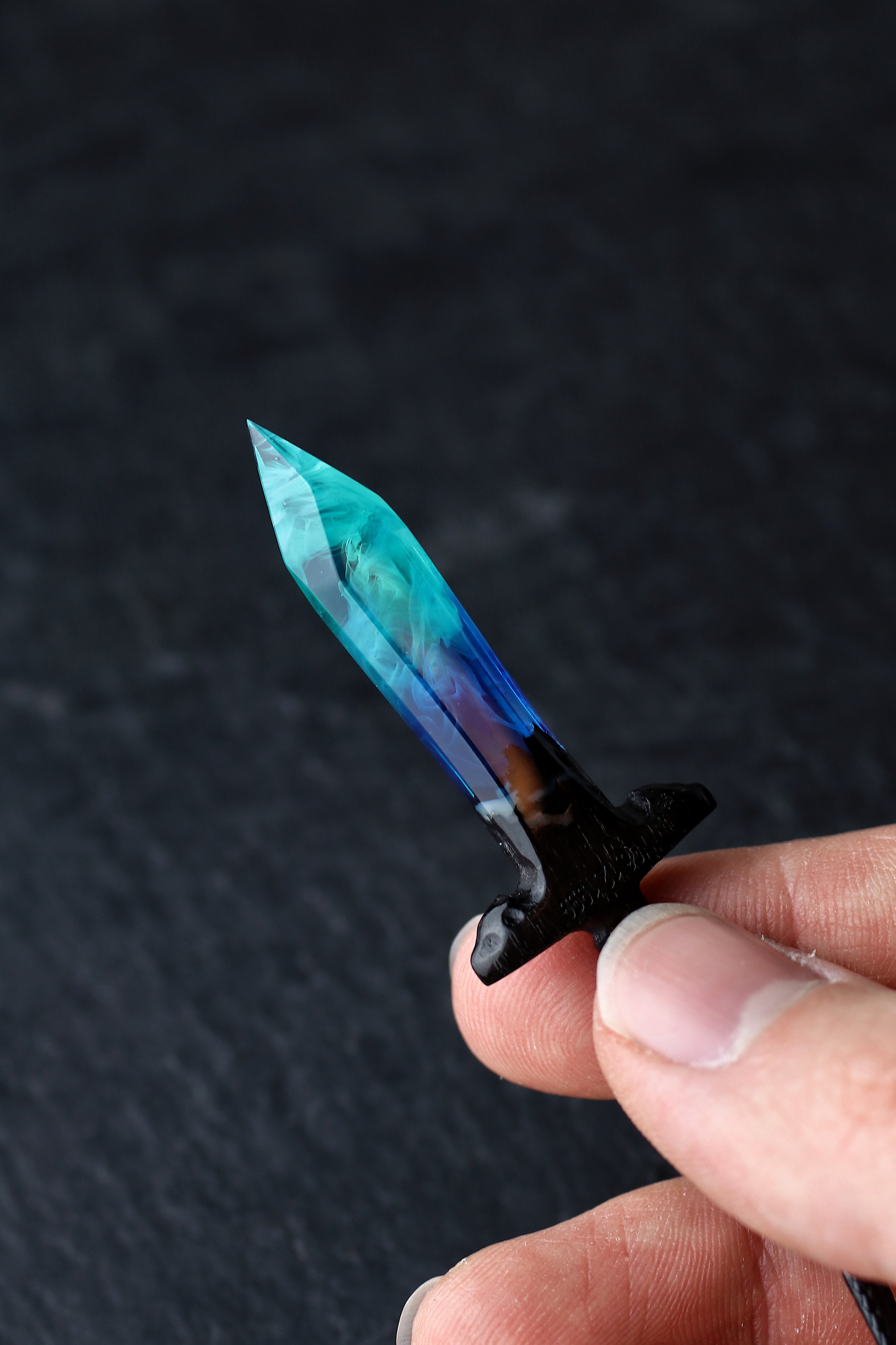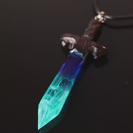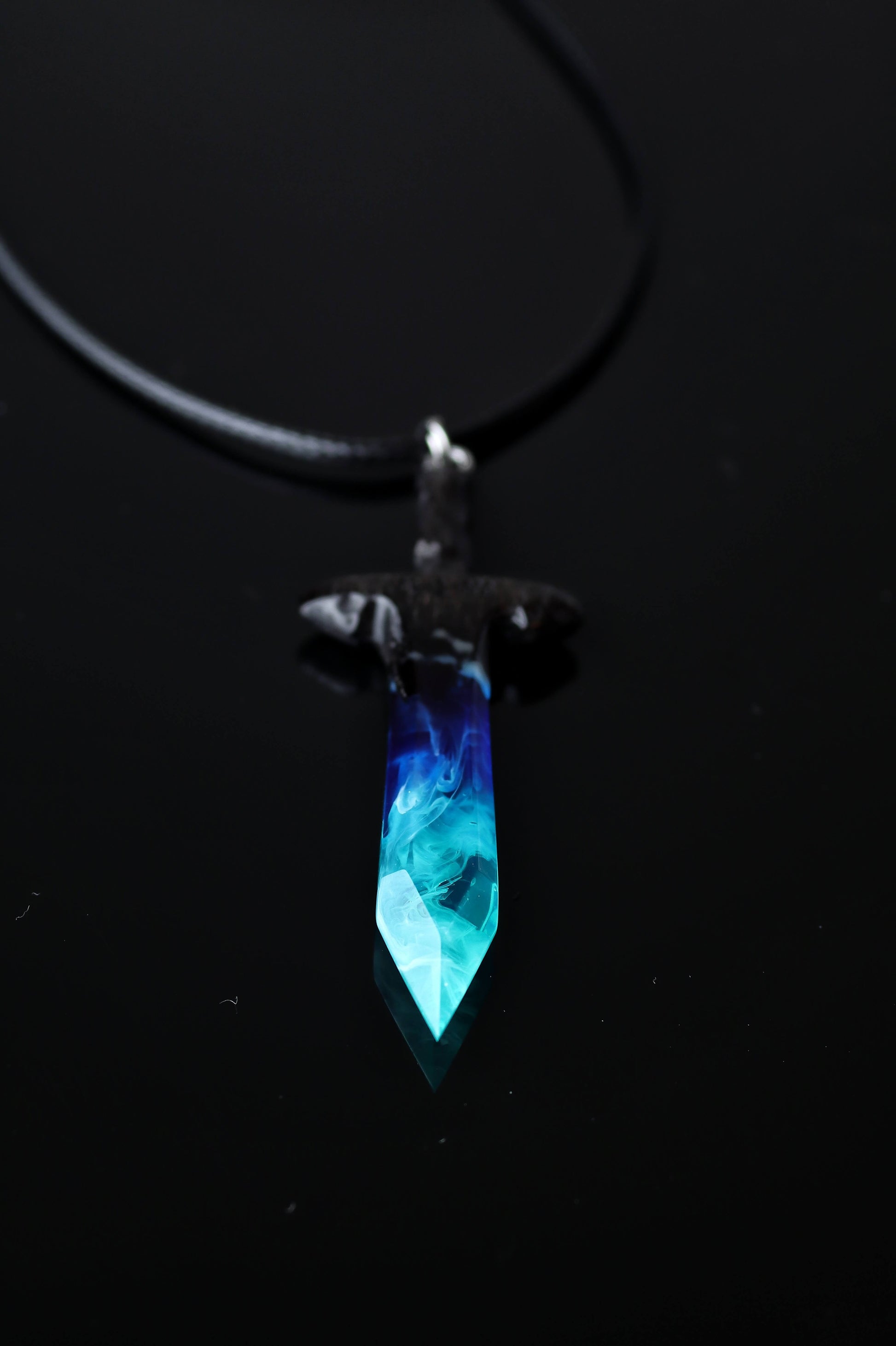 Handmade pendant in the shape of a sword from black hornbeam wood and resin.