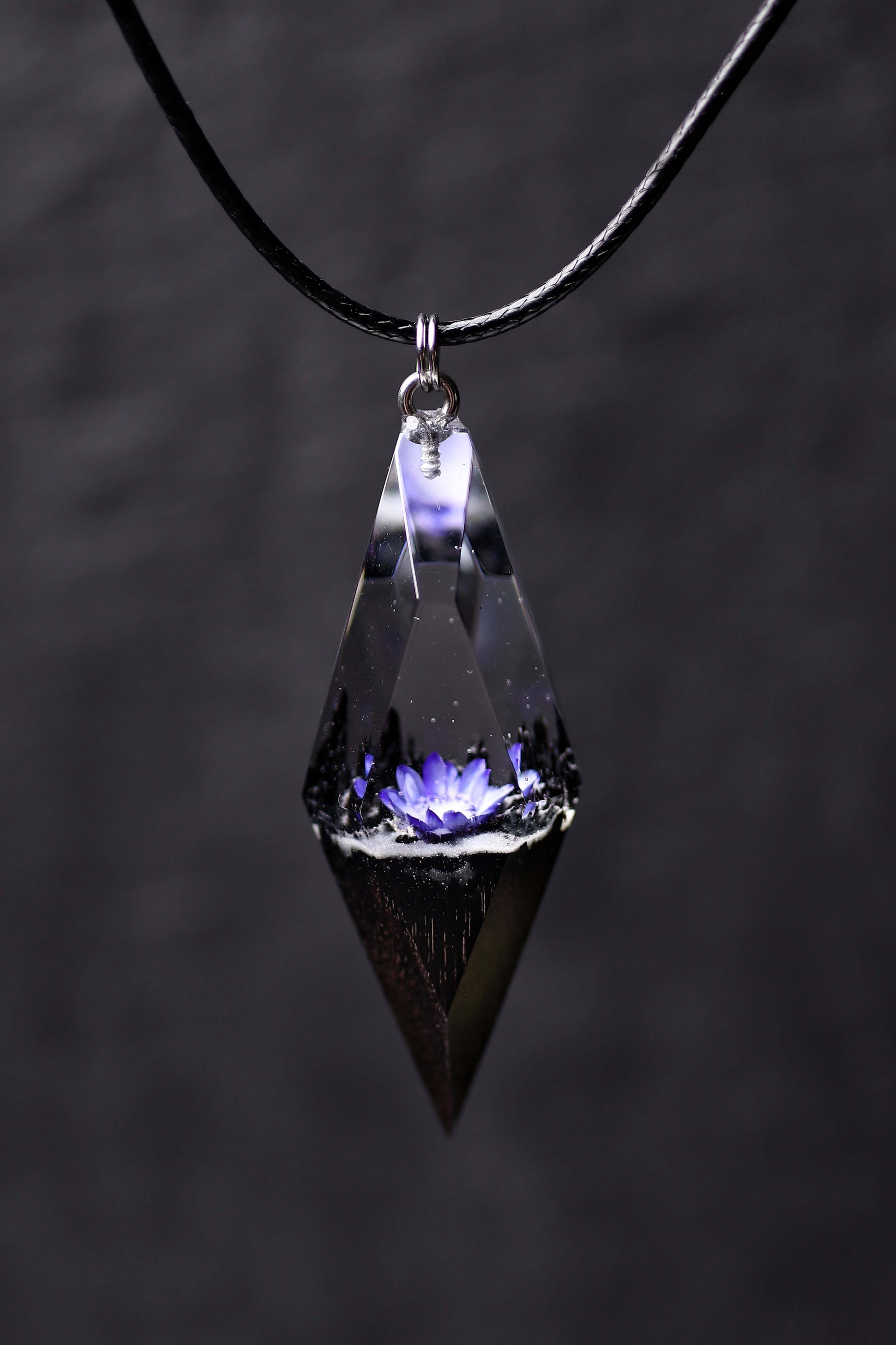 Handmade pendant from black hornbeam wood and resin with dried white chamomile inside. Can be personalized.