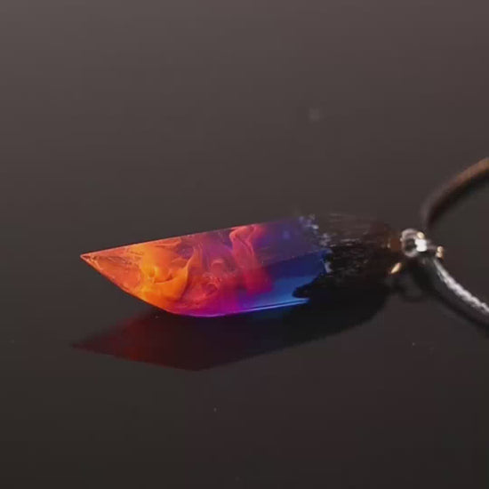 Handmade fang-shaped pendant from black hornbeam wood and resin.
