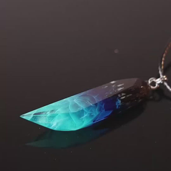 Handmade fang-shaped pendant from black hornbeam wood and resin.
