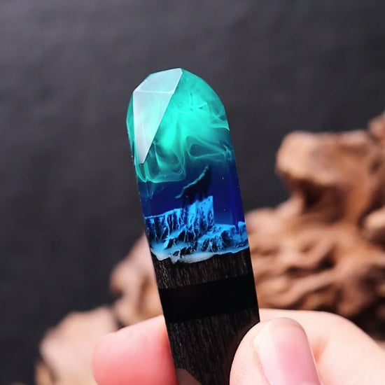 Epoxy resin and wood Northern lights Mountain Wolf USB